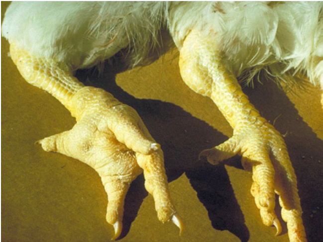 – مفاصل پا ها و خرگوشی در پرنده آلوده متورم و حاوی اکسودای شفاف تا کدر کرمی می باشند.